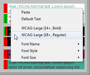 Accessibility Guidelines (WCAG), a ratio helpful in analyzing the legibility of colored text. Please consult the CT&A Help manual for the equation