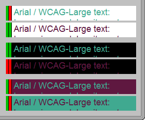 The two red or green vertical bars on the left of each text box indicate if the text, as shown, meets the WCAG requirements. The first bar