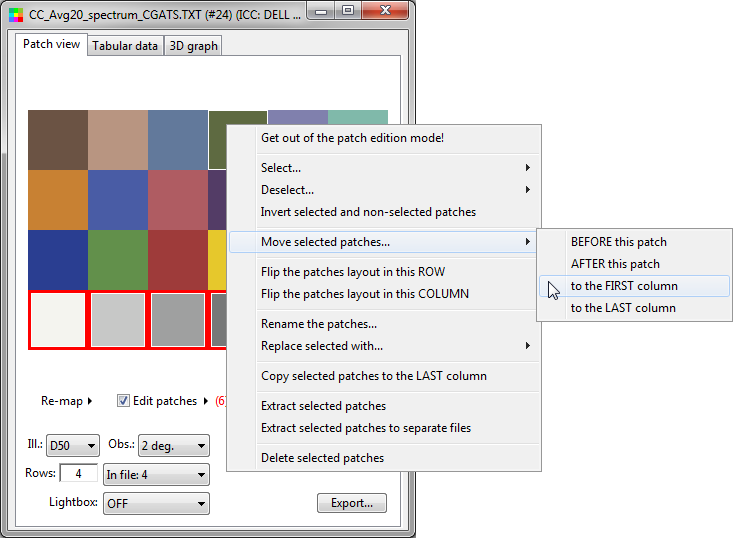 Replace selected patches by White, 50% Gray, Black, or OSA-UCS