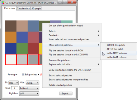 Move selected patches before or after a patch, to the first column,